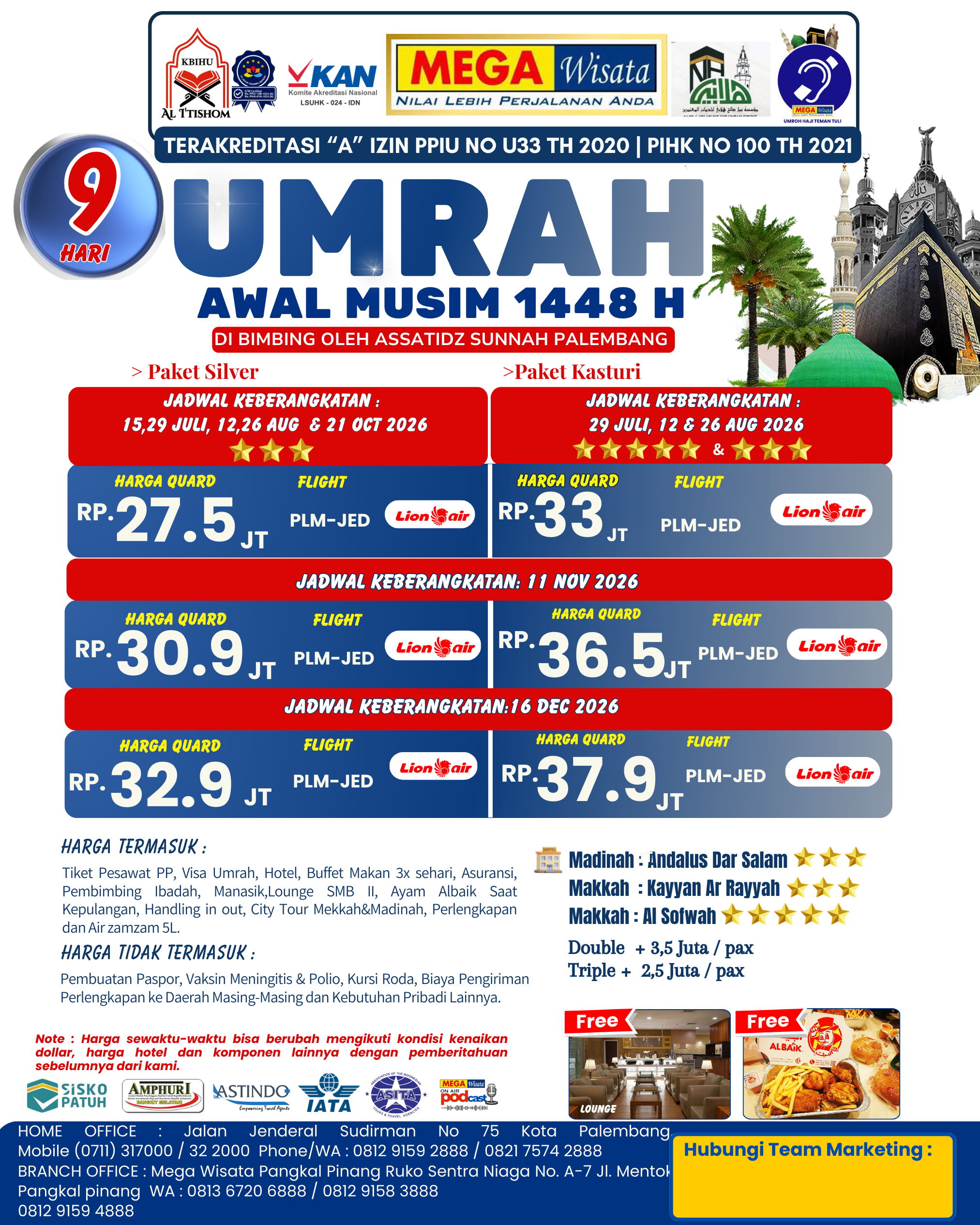 Baca SelengkapnyaAlhamdulillah, Umrah telah dibuka dan saatnya menjawab panggilan Allah. wujudkan perjalanan ibadah umrah sebagai jawaban rindu ke tanah suci. Piliha Paket terbaik bersama Mega Wisata.